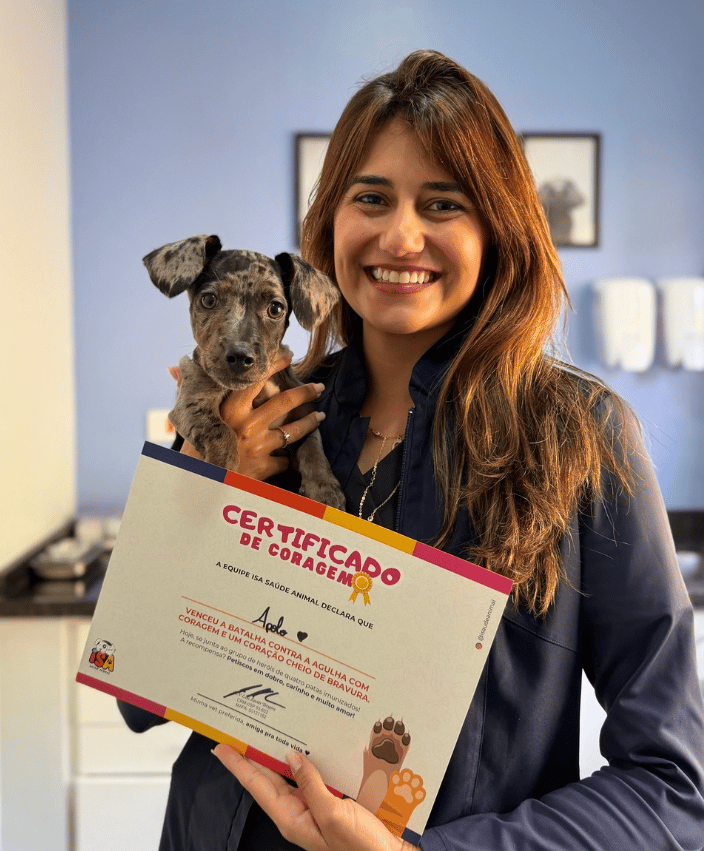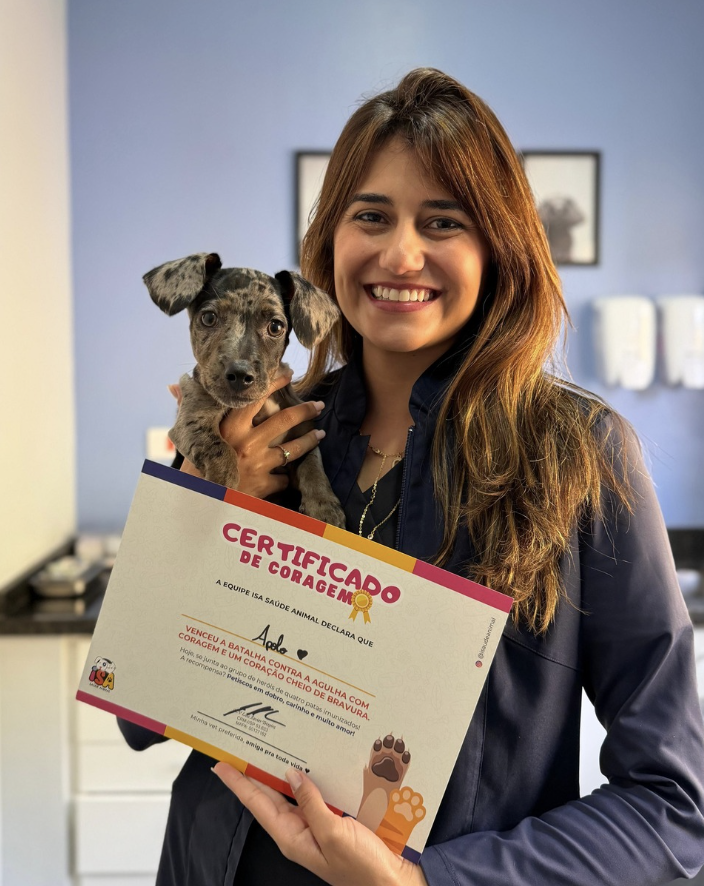 Os pets que tomam vacina na ISA, ganham um certificado de coragem personalizado com o seu nome para que possam sempre se lembrar desse ato de bravura