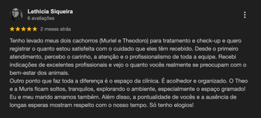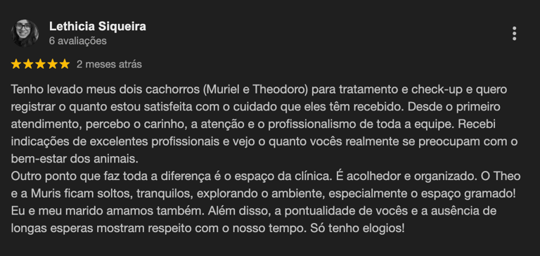 A tranquilidade de ter uma clínica completa, equipe veterinária e um centro cirúrgico moderno, faz toda